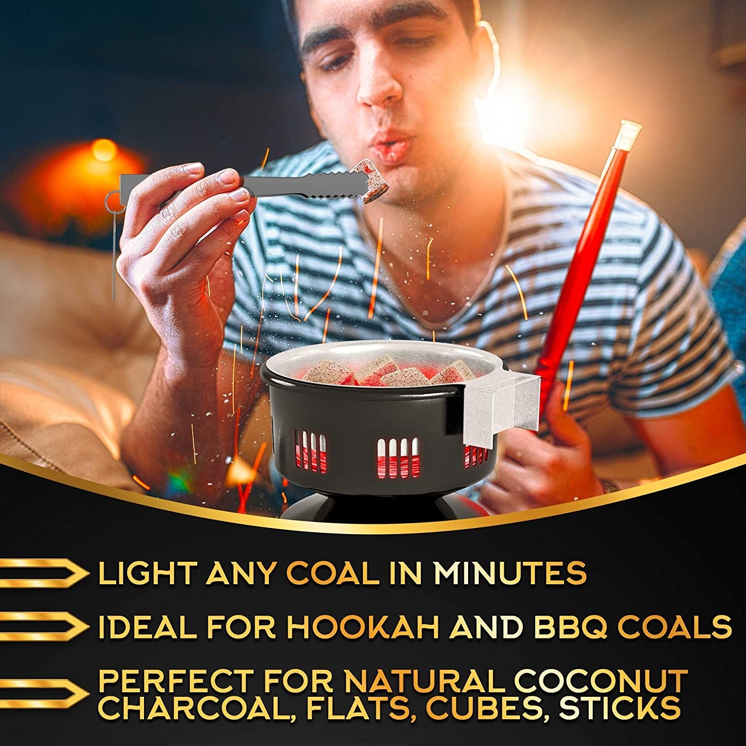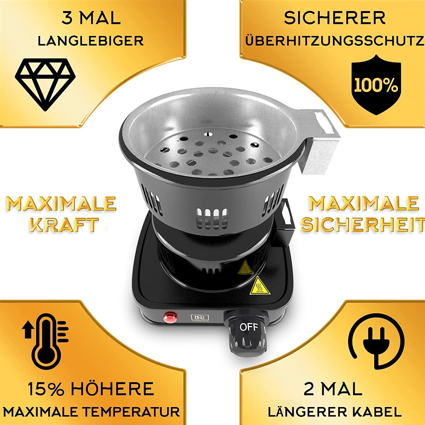 - ✅ 𝗛𝗢𝗛𝗘 𝗥𝗘𝗜𝗖𝗛𝗪𝗘𝗜𝗧𝗘: with an extra-long 150cm power cable, the charcoal lighter can be placed anywhere on the balcony terrace table. Perfect for comfortable shisha smoking!