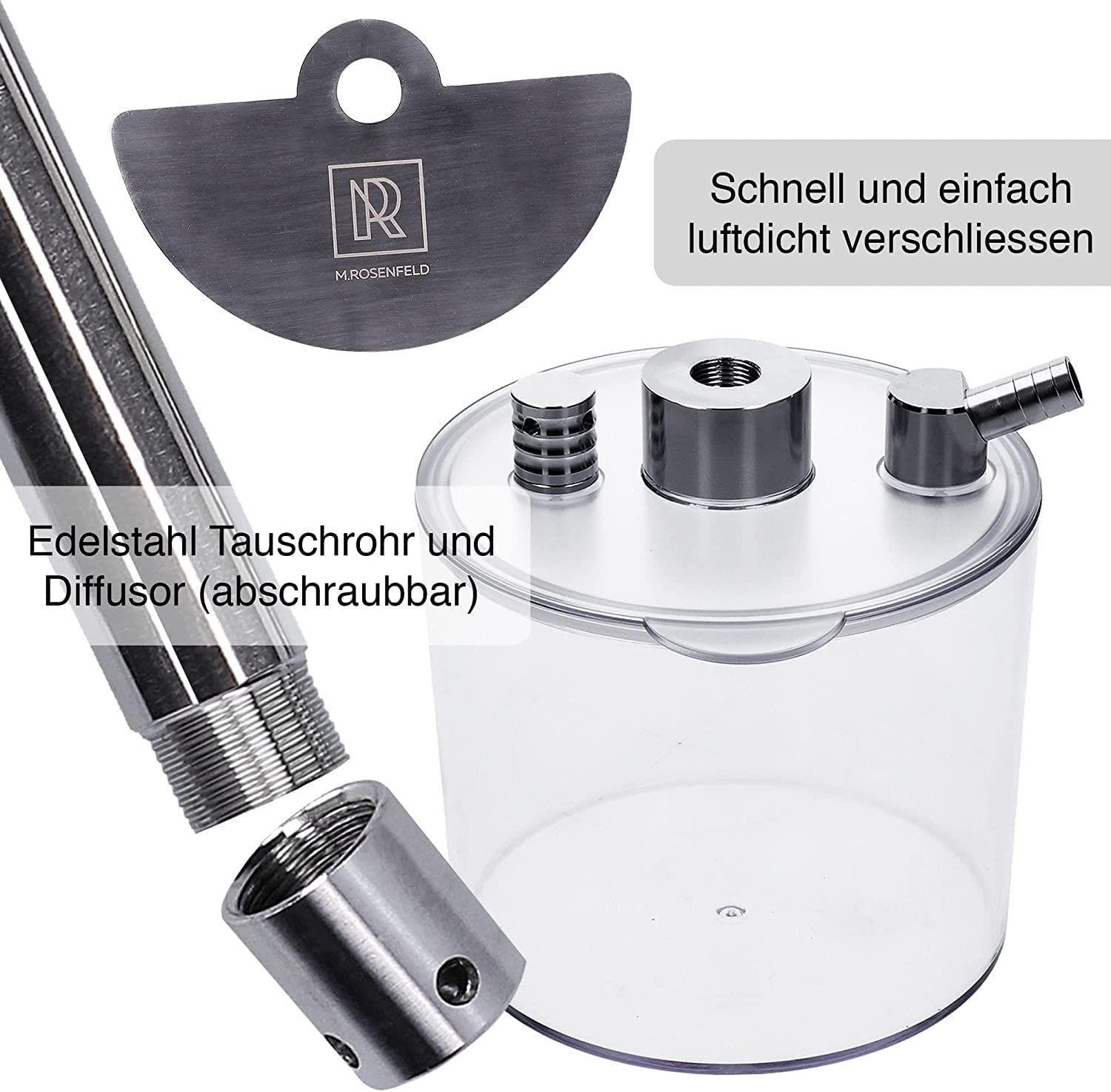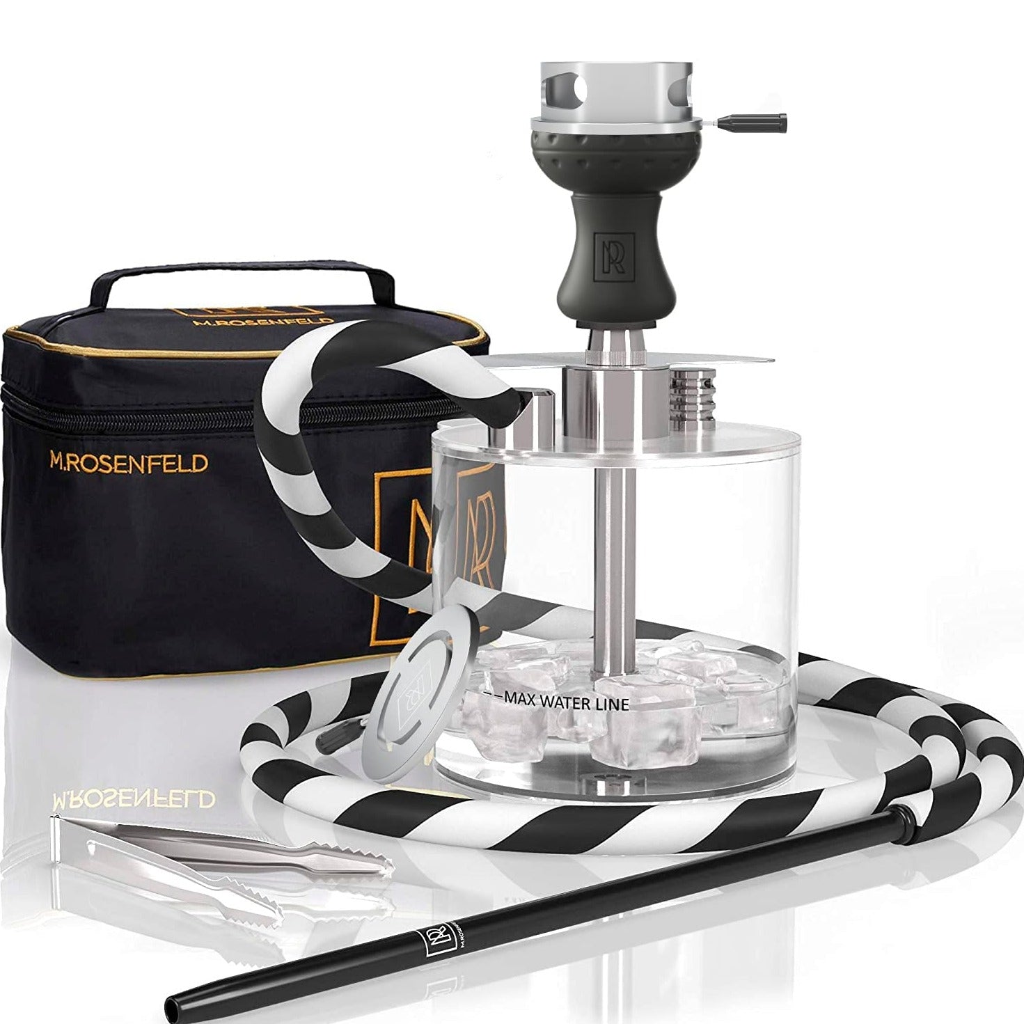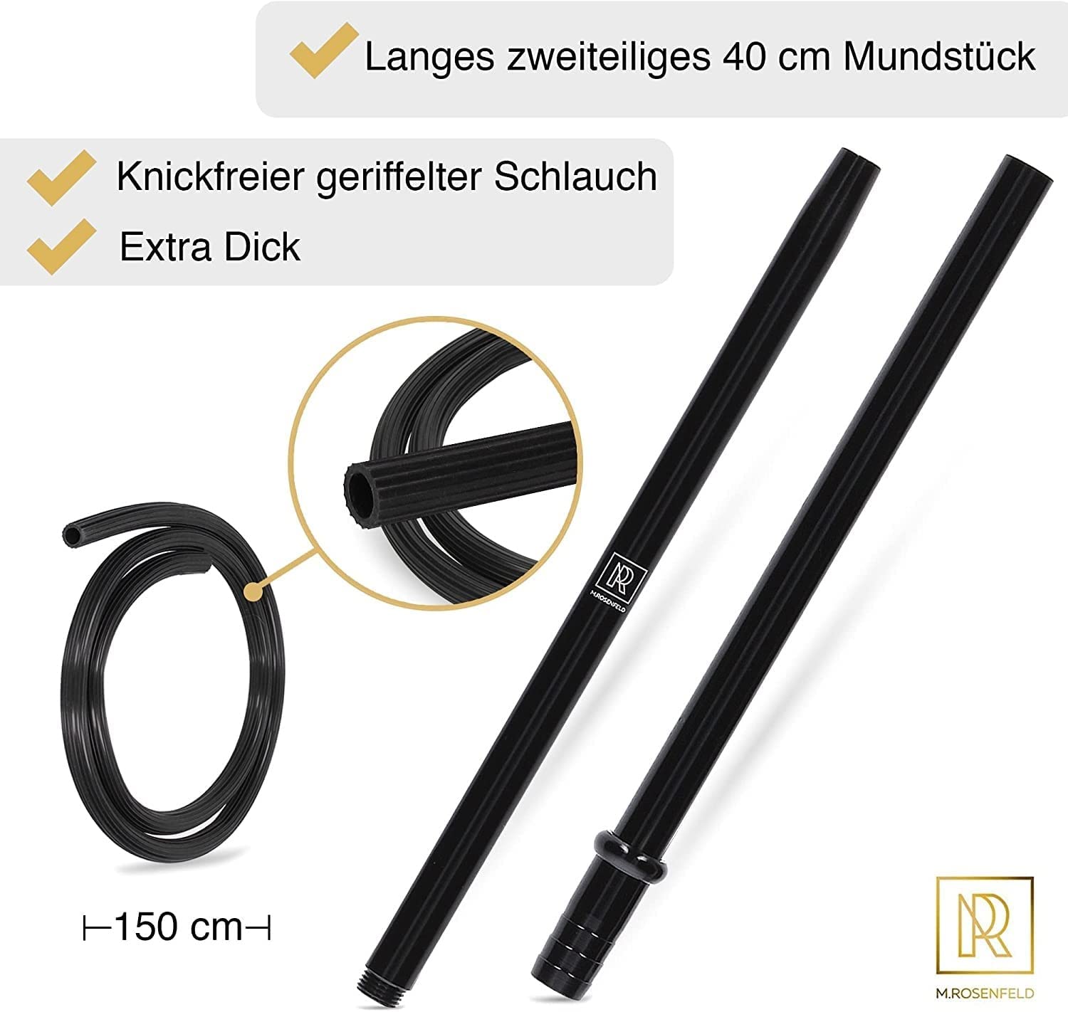 Details: ROSENFELD Premium Shisha water pipe - made of stainless steel and acrylic - Smoke Shisha light and stable 1.Are you looking for a water pipe that is compact and extremely stable at the same time? 2. You don't want a 0815 water pipe, but you don't want to spend too much money for an overpriced product? Included in the scope of delivery: + complete shisha set with + acrylic bowl + 2-part mouthpiece + non-sticky hose + stainless steel smoke + noble clay head + practical tobacco sieve + tongs the coal What are you waiting for? Get the compact To Go water pipe from M. Rosenfeld NOW 3. Best features like a non-sticky hose and a two-piece mouthpiece. Then you've come to the right place at M. Rosenfeld! All your requirements will be here. Feel free to check out how we do it below! From hookah lovers to hookah lovers. This is exactly our guiding principle and makes the shisha unique. We love smoking shisha just as much as you do, so we know what needs to be paid special attention to in development and production. So that you really only get the best for your daily shisha evenings. The bowl is made of the highest quality acrylic material and is therefore extremely light. With a weight of one kilogram, you can take it with you without carrying heavy things. Thanks to the wide base, it has a great stand and you don't have to worry about it tipping over. Whether on the table or relaxing with your friends at the lake. The chimney head shisha is perfect. Nothing stands in the way of relaxed afternoons in the sun and evenings on the balcony or in the living room. shisha shishas shisha shisa