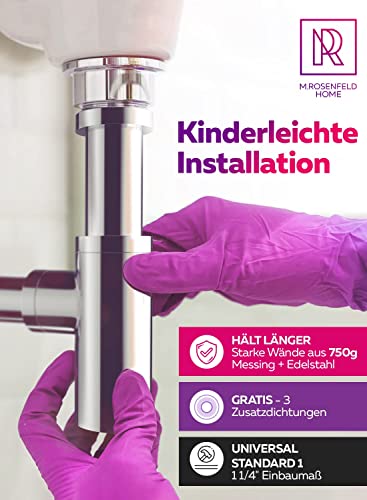 - 💎 STILVOLL EDEL: ideale Lösung für Badezimmer und optische Aufwertung des handelsüblichen Waschtisch. Solides Abflussrohr Spuelbecken mit Ablauf, Dichtungsringe, Wand Rosette und Geruchsverschluss