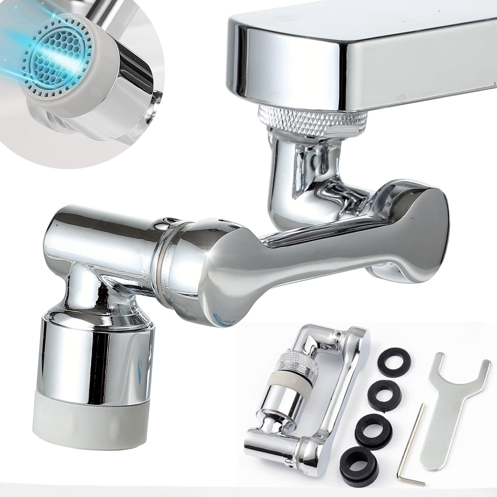 Drehbarer Wasserhahn Verlängerung 1080 Grad mit Wassersparend Perlatoren