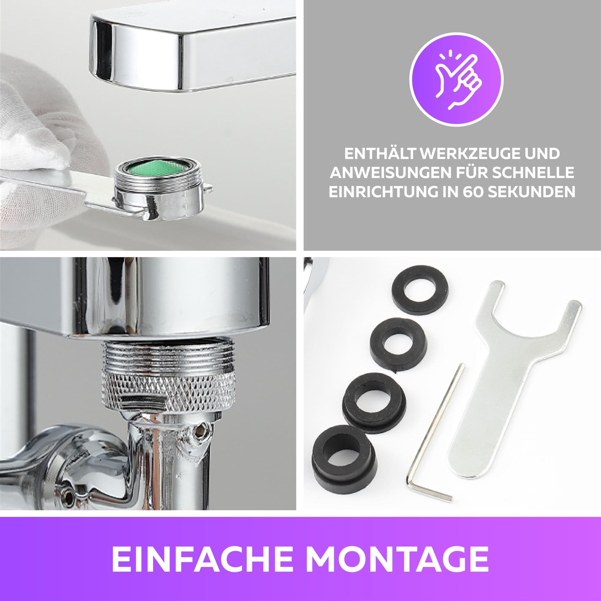 - Das Wasserhahn Verlängerung Kit Enthält Werkzeuge und Anweisungen für Schnelle Einrichtung in nur 60 Sekunden